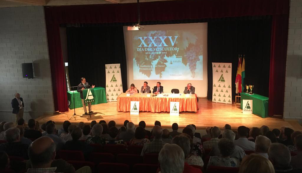 El auditorio ‘López Torres’ de Tomelloso (Ciudad real) ha acogido el acto central del Día del Viticultor de ASAJA. En él, el presidente regional de la organización agraria, Fernando Villena, ha recordado la importancia de un evento que lleva celebrándose ininterrumpidamente 35 años en la localidad. Este año ha sido Rafael del Rey, Director General del Observatorio Español del Mercado del Vino, el encargado de exponer ante un auditorio lleno, una magistral ponencia sobre el sector vitivinícola; con los precios de la uva y su constitución como protagonistas.
