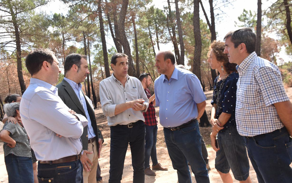 El vicepresidente del Gobierno regional, José Luis Martínez Guijarro, ha visitado este viernes la zona calcinada junto al viceconsejero de Medio Ambiente, Fernando Merchán, y alcaldes de los términos municipales afectados. Una vez que el Ministerio dé su aprobación a dicha memoria, se llevarán a cabo los trabajos de manera inmediata, ya que lo más urgente es la corta de la madera calcinada para evitar plagas.