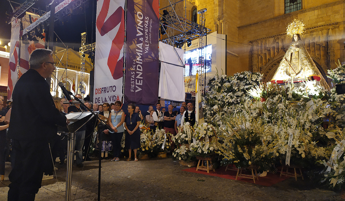 El alcalde también pidió a la patrona de la ciudad “llevar al lecho del cielo a todos cuantos valdepeñeros y valdepeñeras nos han dejado a lo largo del último año”, haciendo especial referencia al padre Trinitario que fallecía en la mañana de este sábado.