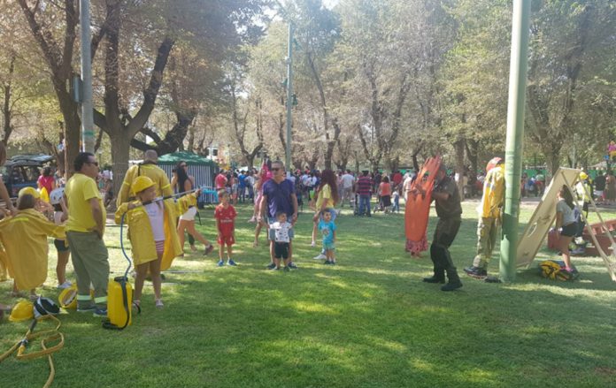 Entre las actividades lúdicas y divulgativas organizadas por los técnicos especializados en incendios forestales se encontraban la simulación de un fuego, a través de un banco de arena o la explicación de algunas de las herramientas de los equipos de protección individual (EPI), como las mangueras.