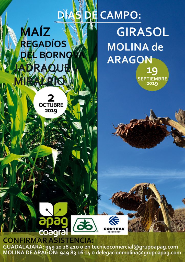 La segunda jornada tendrá lugar el miércoles 2 de octubre y será un día de campo de maíz en los regadíos del Bornova. El punto de encuentro será el restaurante ‘El Castillo’ de Jadaraque, a las 11:00 horas. Es necesario confirmar asistencia en el tfno. 949 20 28 40 o en tecnicocomercial@grupoapag.com.