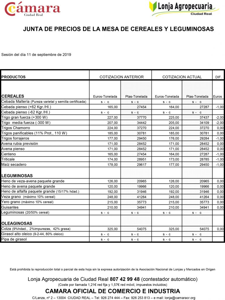 Lonja de Ciudad Real. Cereales. 11-septiembre-2019