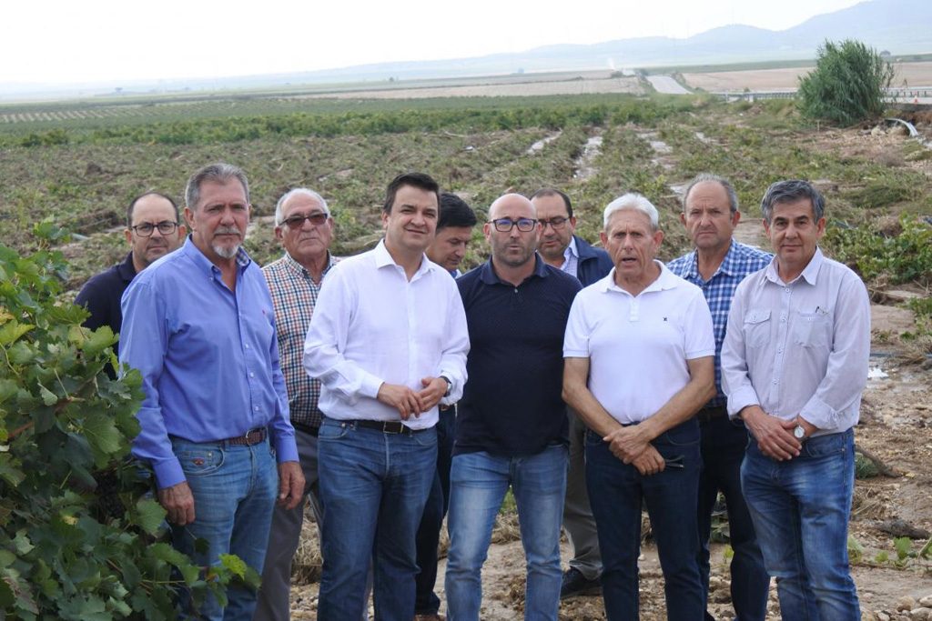 Así lo ha explicado Francisco Martínez Arroyo durante un encuentro que ha mantenido en la zona afectada por las tormentas en la comarca de la Denominación de Origen Jumilla con alcaldes, concejales, cooperativistas y agricultores de las localidades Fuente-Álamo, Ontur, Alpera, Montealegre, Higueruela y Albatana, donde ha comprobado en las parcelas la afectación de las viñas y la uva que aún no se había recogido en esta campaña.