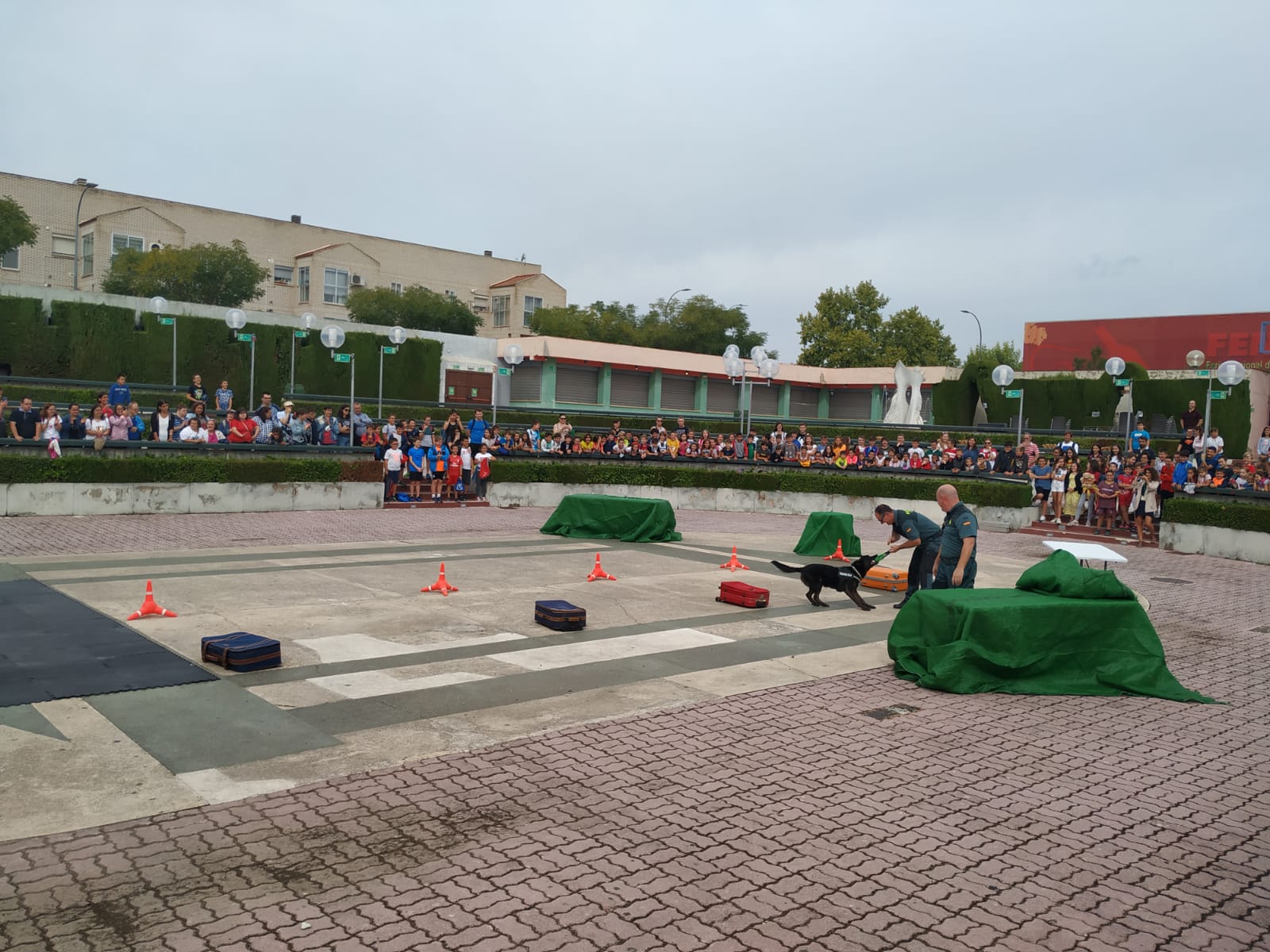Acompañados por una veintena de profesores y monitores, los chavales han asistido a una exhibición de defensa personal y adiestramiento de perros, organizada por la Comandancia de la Guardia Civil de Ciudad Real.