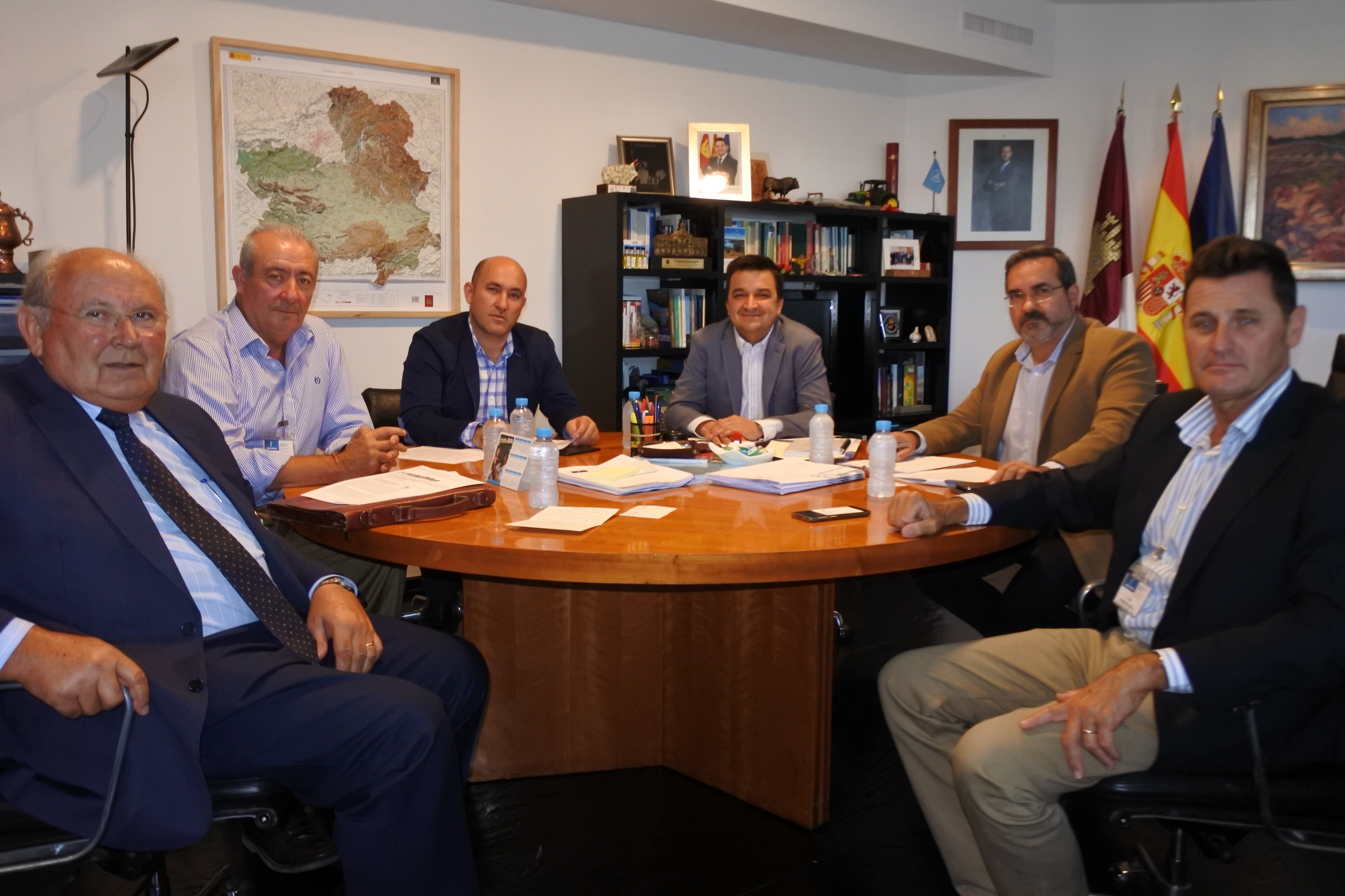 El consejero de Agricultura, Agua y Desarrollo Rural de Castilla-La Mancha, Francisco Martínez Arroyo, ha mantenido esta semana un encuentro con representantes de la Federación de Comunidades de Regantes de la Cuenca del Ebro (FEREBRO), que preside César Trillo Guardia; una de las siete cuencas hidrográficas que vertebran Castilla-La Mancha y que cuenta en la región con una comunidad de regantes, en la vega del río Mesa.