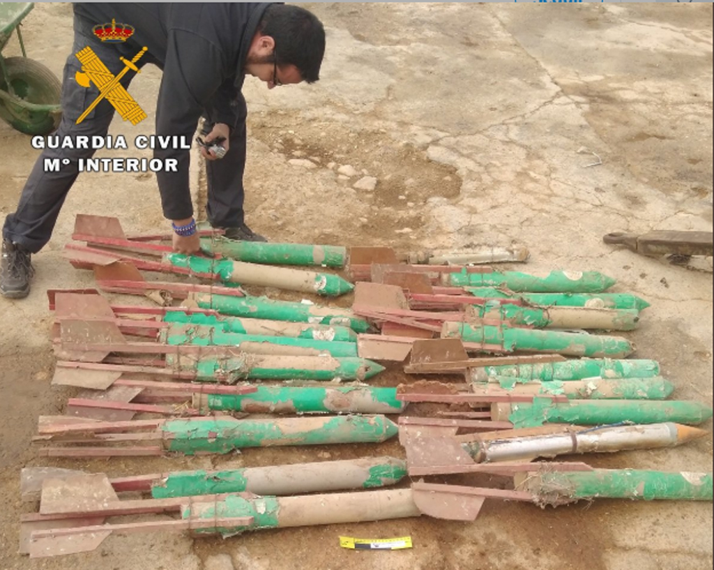 La Guardia Civil ha neutralizado, en dos actuaciones, un proyectil de artillería de 90 mm y 20 cohetes granífugos, en avanzado estado de deterioro localizados por dos particulares en los términos municipales de Pozo Lorente y Corral Rubio respectivamente.
