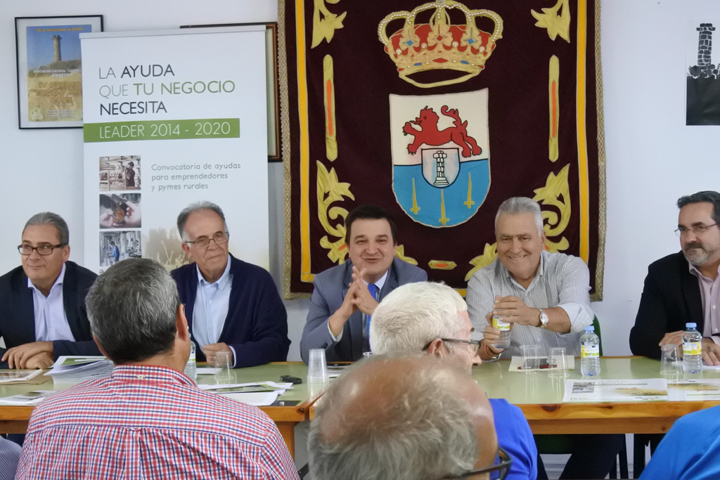 Su presidente, Vicente Hita; el alcalde de la localidad, Carlos Cabra; José Juan Fernández, director general de Desarrollo Rural, y el delegado provincial de Desarrollo Rural, Santos López, han acudido a este encuentro junto al consejero donde han estado presentes concejales y alcaldes de las localidades donde se realizarán estos proyectos enfocados a mejorar la vida de los habitantes de estas localidades, como obras del acondicionamiento del centro de salud y su entorno, la mejora de redes de agua potable para ahorro o la ampliación del alumbrado publico