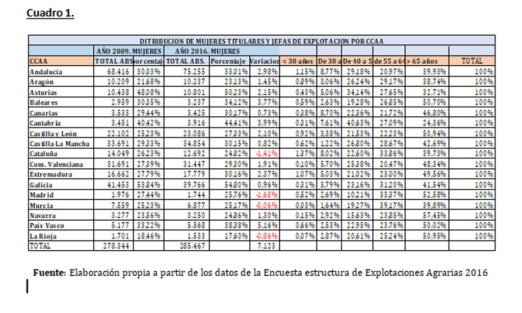 El análisis de los datos de la última Encuesta de Explotaciones Agrarias publicada en 2017 habla de 285.467 mujeres titulares o jefas de explotación agraria, lo que supone un incremento de 7.123 mujeres respecto al inicio de la presente década (278.344), según apuntan desde la organización agraria COAG.