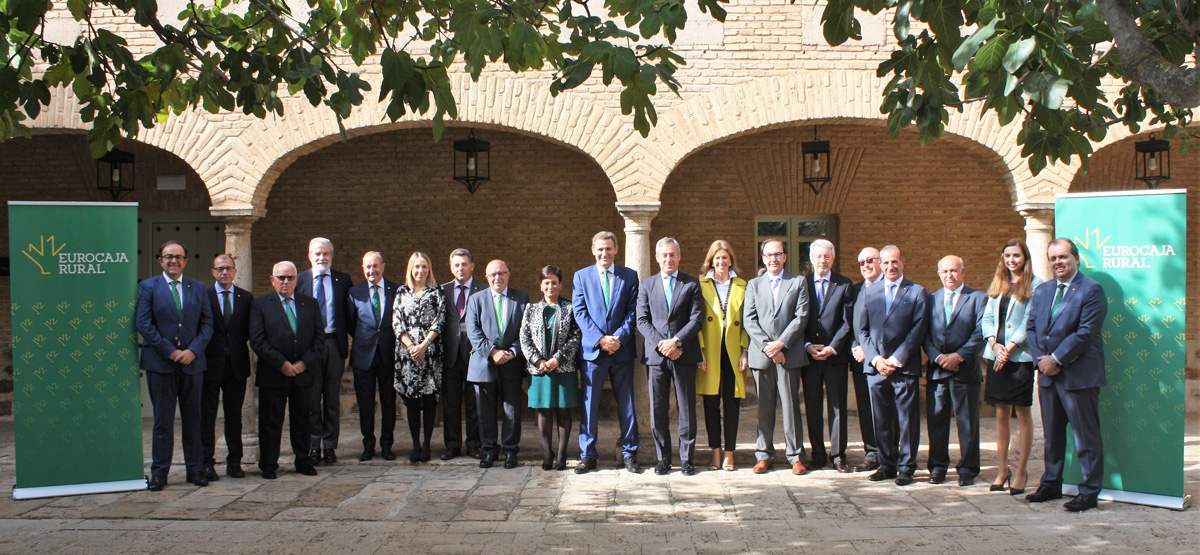 El presidente de Eurocaja Rural, Javier López Martín, y su director general, Víctor Manuel Martín López, presidieron esta reunión que tuvo lugar en el Parador de Almagro. En este emplazamiento tan emblemático y singular, el Consejo Rector certificó el buen balance de la entidad, su fortaleza, solidez y solvencia para afrontar con garantías el futuro, así como la excelente posición de liquidez que le caracterizan. Igualmente, se reafirmó la búsqueda del crecimiento recurrente y sostenible a partir de una gestión prudente, la implicación y vocación de servicio de la entidad con todo el ámbito de actuación donde opera, la lucha contra la despoblación abriendo oficinas para propiciar la generación de empleo, riqueza y atención financiera que necesitan los núcleos rurales, y la continuidad en el modelo de negocio que centra sus esfuerzos en la atención cercana, profesional y directa con sus socios y clientes.