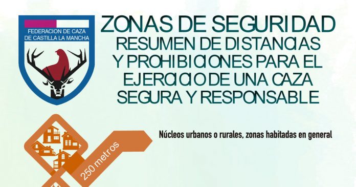 La Federación de Caza de Castilla-La Mancha ha elaborado un díptico resumen en el que se recoge una información detallada sobre las zonas de seguridad y distancias mínimas que se deben cumplir para el ejercicio seguro de la caza.