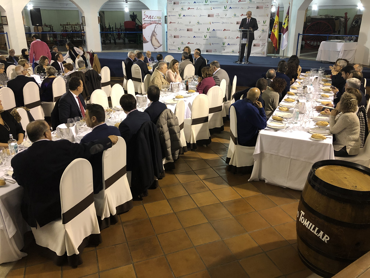 La Asociación de Enología de Castilla-La Mancha celebró este viernes por la noche en Tomelloso, en las instalaciones de Bodega Almazara Virgen de las Viñas, su tradicional cena de hermandad, en la que hizo entrega de sus galardones anuales de «Enólogos Honoríficos», con los que este año ha reconocido el trabajo del presidente de la cooperativa anfitriona, Rafael Torres Ugena; el enólogo toledano de Ventas de Retamosa, José María Álvarez Salvador y el periodista de RTVE, Carlos de la Morena García.