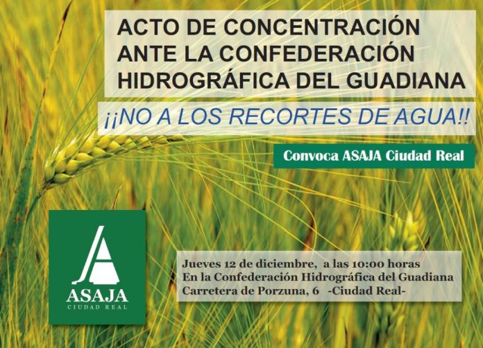 La Asociación Agraria-Jóvenes Agricultores (ASAJA) de Ciudad Real recuerda que el próximo jueves, 12 de diciembre, se concentrará ante la Confederación Hidrográfica del Guadiana (CHG) a partir de las 9:30 horas contra los posibles recortes de agua. Allí se espera la asistencia de representantes de la organización agraria, responsables de las distintas Masas de Agua, regantes, ayuntamientos y agentes económicos y sociales que quieran expresar su solidaridad con los afectados. A todos ellos, ASAJA les invita a participar en esta convocatoria, donde se alzará la voz para pedir a la autoridad hídrica el mantenimiento de las dotaciones de agua en el Alto Guadiana, con 1.500 metros cúbicos por hectárea y año para cultivos leñosos y 2.000 metros cúbicos para herbáceos, frente a la restricción del 10% planteado por la CHG y del 5% al 6,67% por la Consejería de Agricultura, Agua y Desarrollo Rural de Castilla-La Mancha.