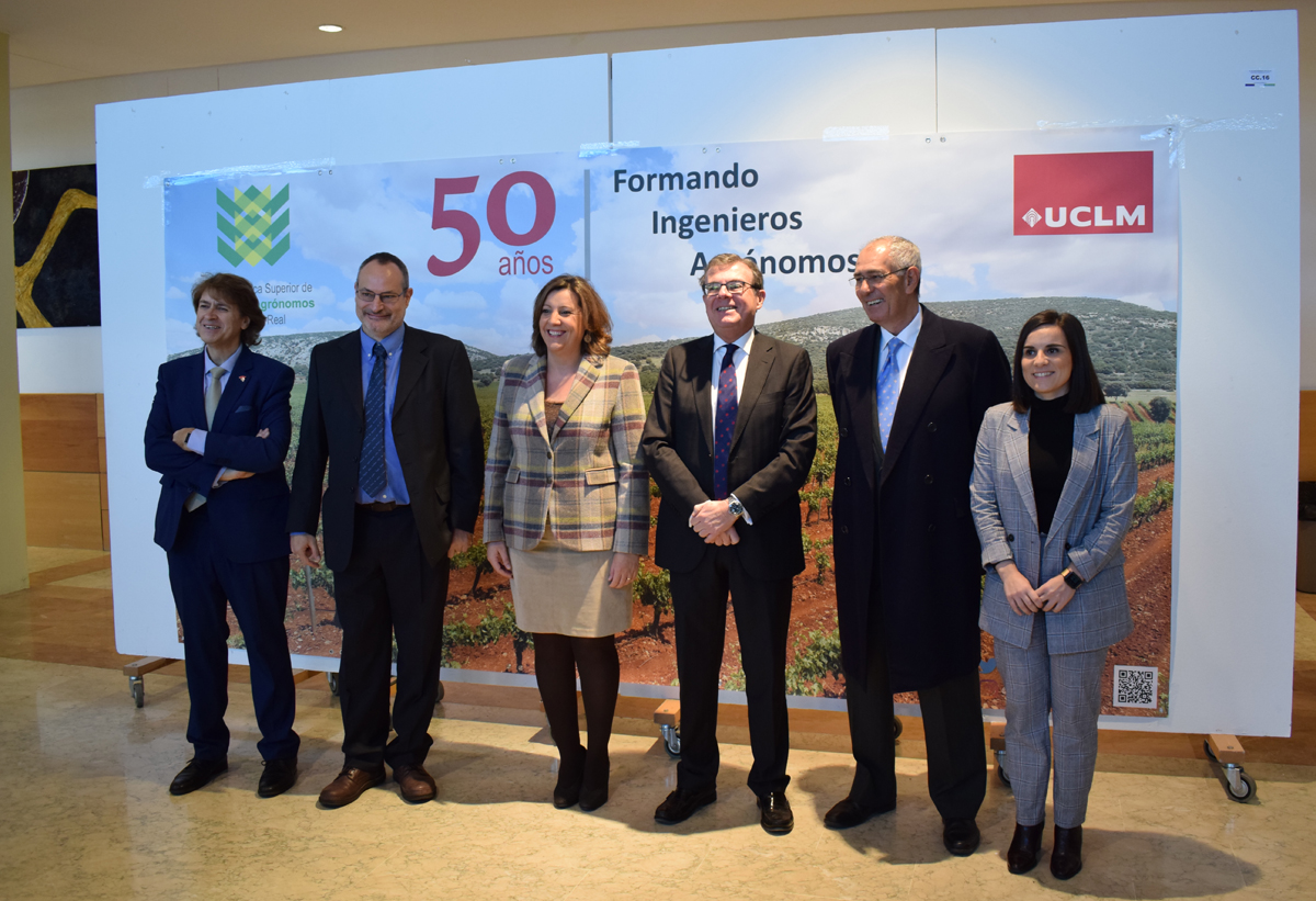 Junto a la consejera han tomado parte en el acto conmemorativo del 50 aniversario de la Escuela Técnica Superior de Ingenieros Agrónomos de Ciudad Real, el rector de la Universidad de Castilla-La Mancha (UCLM), Miguel Ángel Collado, y el director de la Escuela, Jesús Antonio López. El primero ha subrayado la importancia de la Escuela como parte de la Universidad de Castilla-La Mancha y su potencial en la formación de profesionales. Por su parte, Jesús Antonio López ha hecho hincapié en la versatilidad de los ingenieros agrónomos y en la importancia de contar con especialistas a la hora de abordar la innovación o la mejora en las tareas agroalimentarias.