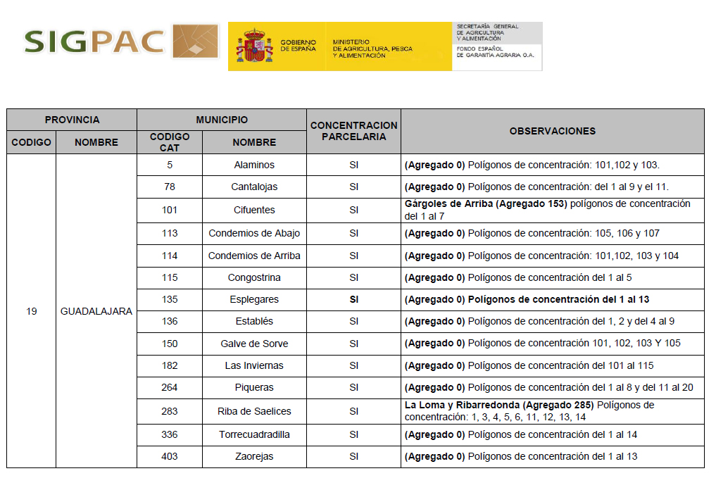 El Fondo Español de Garantía Agraria (FEGA) ha publicado la relación de municipios en los que, de manera excepcional, no se utilizarán las referencias del SIGPAC (Sistema de Información Geográfica de Parcelas Agrícolas) para la identificación de las parcelas agrícolas en la campaña 2020.