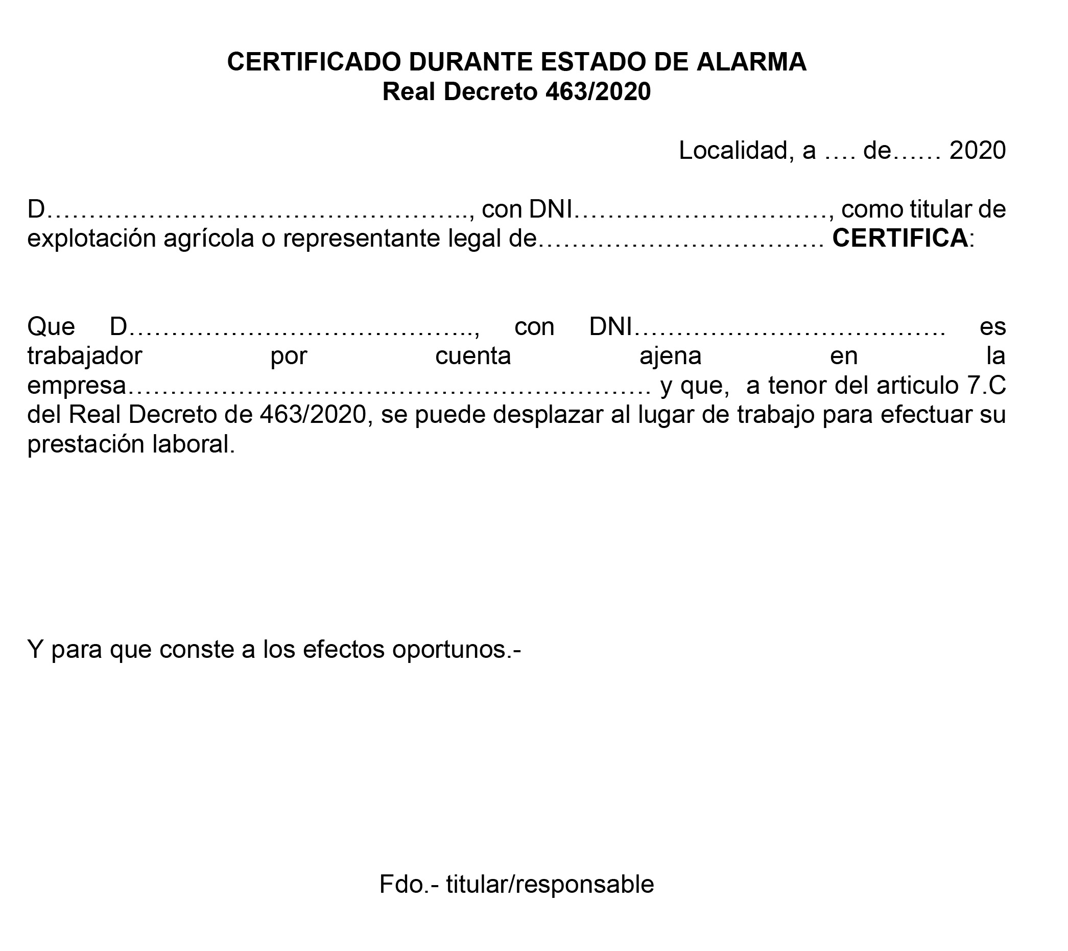 Además, desde la organización agraria recomiendan facilitar a cada trabajador un certificado de actividad para los desplazamientos al trabajo, que debe estar cumplimentado y firmado. También se recomienda llevar algún documento que acredite que se es agricultor o ganadero, como el cupón o sello agrario (recibo de la Seguridad Social) o el carné de usuario profesional de productos fitosanitarios.