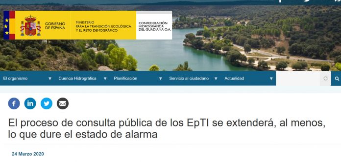En la web de la Confederación Hidrográfica del Guadiana (CHG) indican que el proceso de consulta pública de los Esquemas provisionales de Temas Importantes de las demarcaciones hidrográficas se extenderá, al menos, lo que dure el estado de alarma