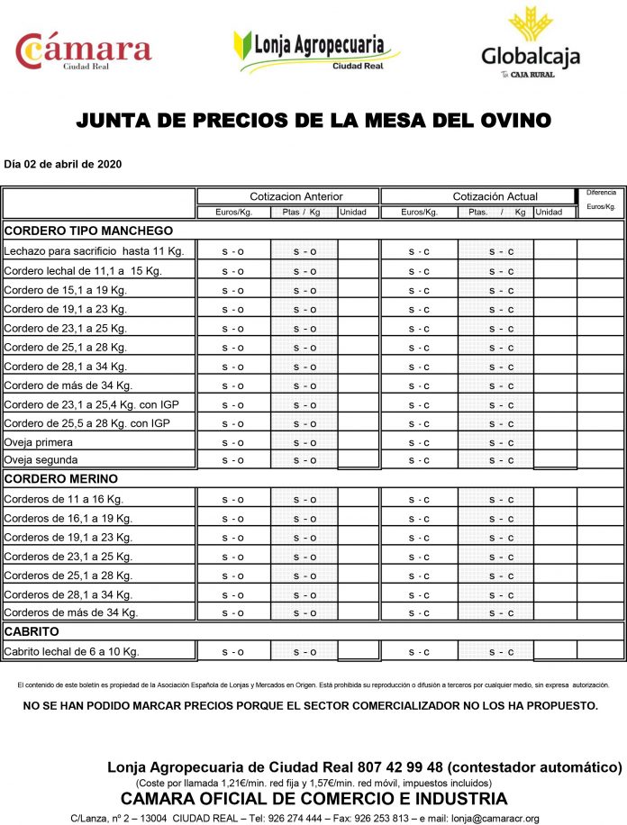 Lonja de Ciudad Real. Ovino. 2-abril-2020
