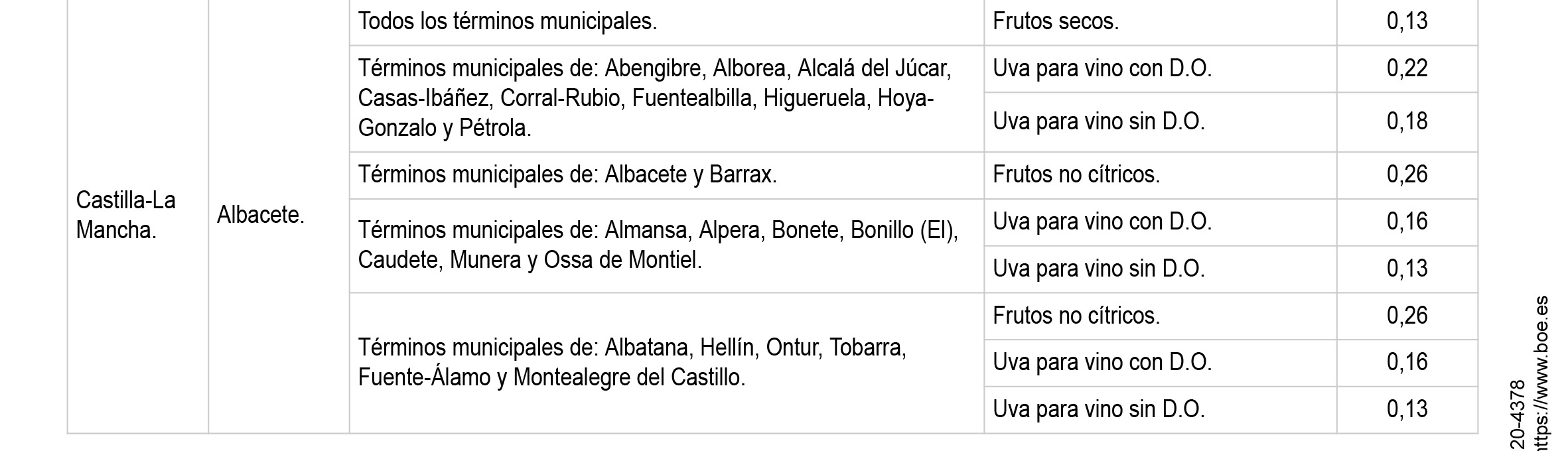 Las reducciones benefician a productores de uva, frutos secos, hortícolas, cereales, olivo, leguminosas o frutos no cítricos.