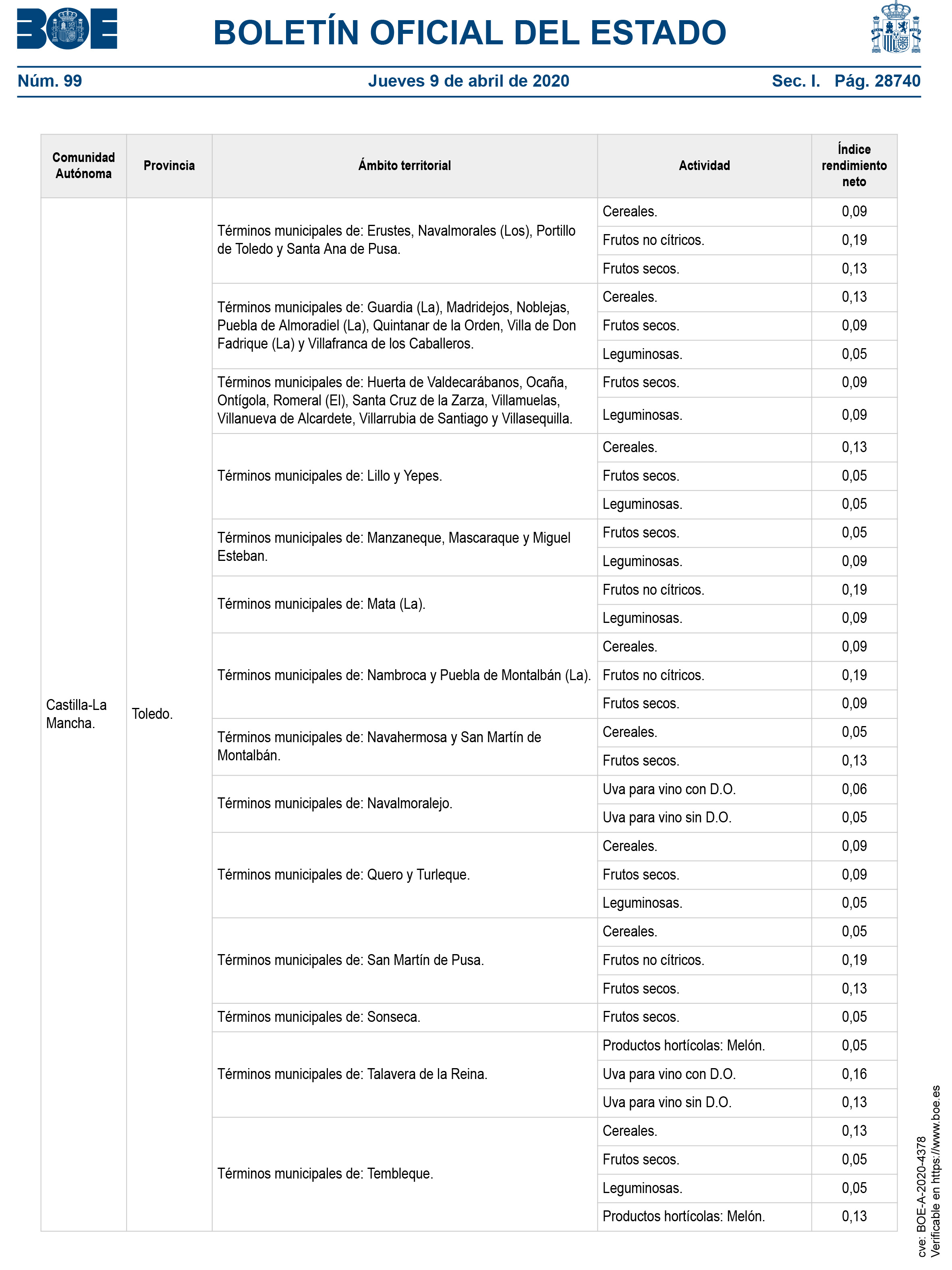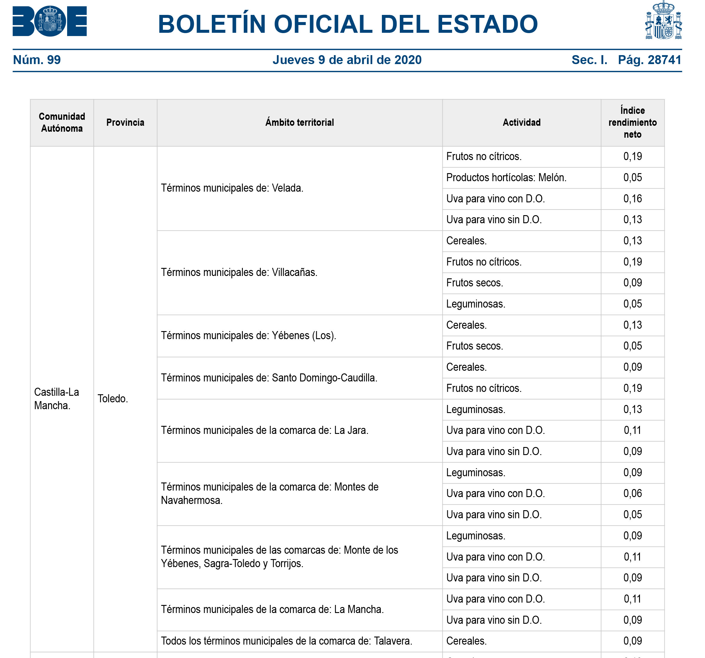 El Boletín Oficial del Estado (BOE) ha publicado la Orden del Ministerio de Hacienda por la que se reducen para el período impositivo 2019 los índices de rendimiento neto aplicables en el método de estimación objetiva del Impuesto sobre la Renta de las Personas Físicas para las actividades agrícolas y ganaderas afectadas por diversas circunstancias excepcionales.