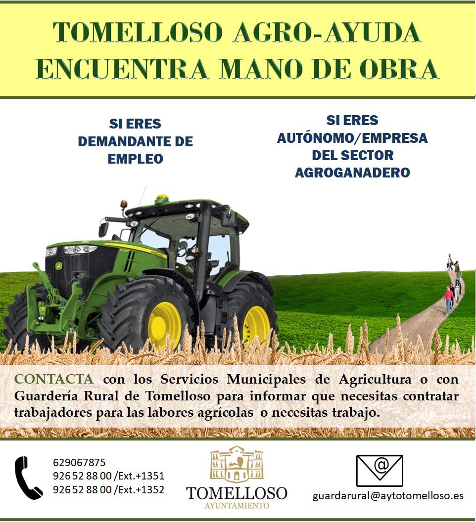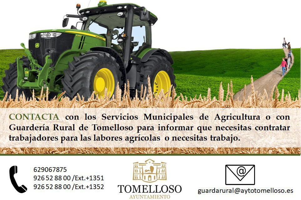 Los interesados en contactar con este programa denominado “Tomelloso agroayuda, encuentra mano de obra”, pueden dirigirse a los números de teléfono 629067875, 926 52 88 00 (extensiones 1351 y 1352) a la cuenta de correo guardarural@aytotomelloso.es o a las oficinas de la Guardería Rural ubicadas en la 4ª planta del edificio administrativo del Ayuntamiento de Tomelloso.