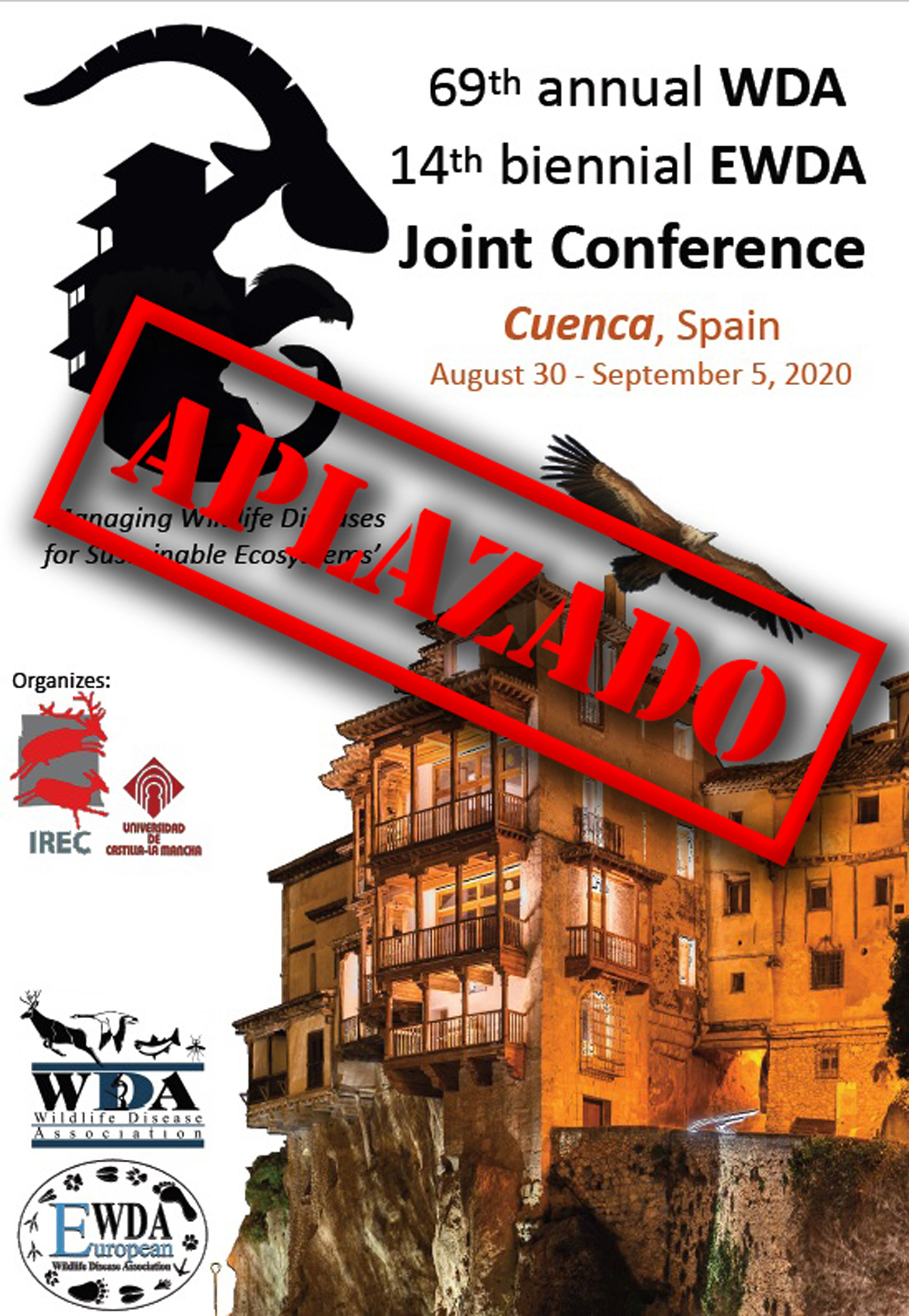 El Instituto de Investigación en Recursos Cinegéticos (IREC), centro mixto del Consejo Superior de Investigaciones Científicas (CSIC), la Universidad de Castilla-La Mancha (UCLM) y la Junta de Comunidades de Castilla-La Mancha, ha aplazado la celebración de la 69th Annual Wildlife Disease Association (WDA) and 14th Biennial European Widllife Disease Association (EWDA) Joint Conference, que estaba organizando inicialmente para su celebración del 30 de agosto al 5 de septiembre, en el campus universitario de Cuenca.