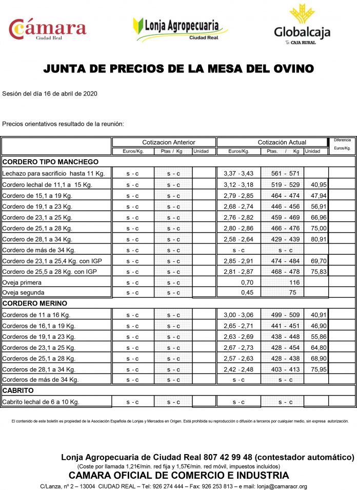 Lonja de Ciudad Real. Ovino. 16-abril-2020