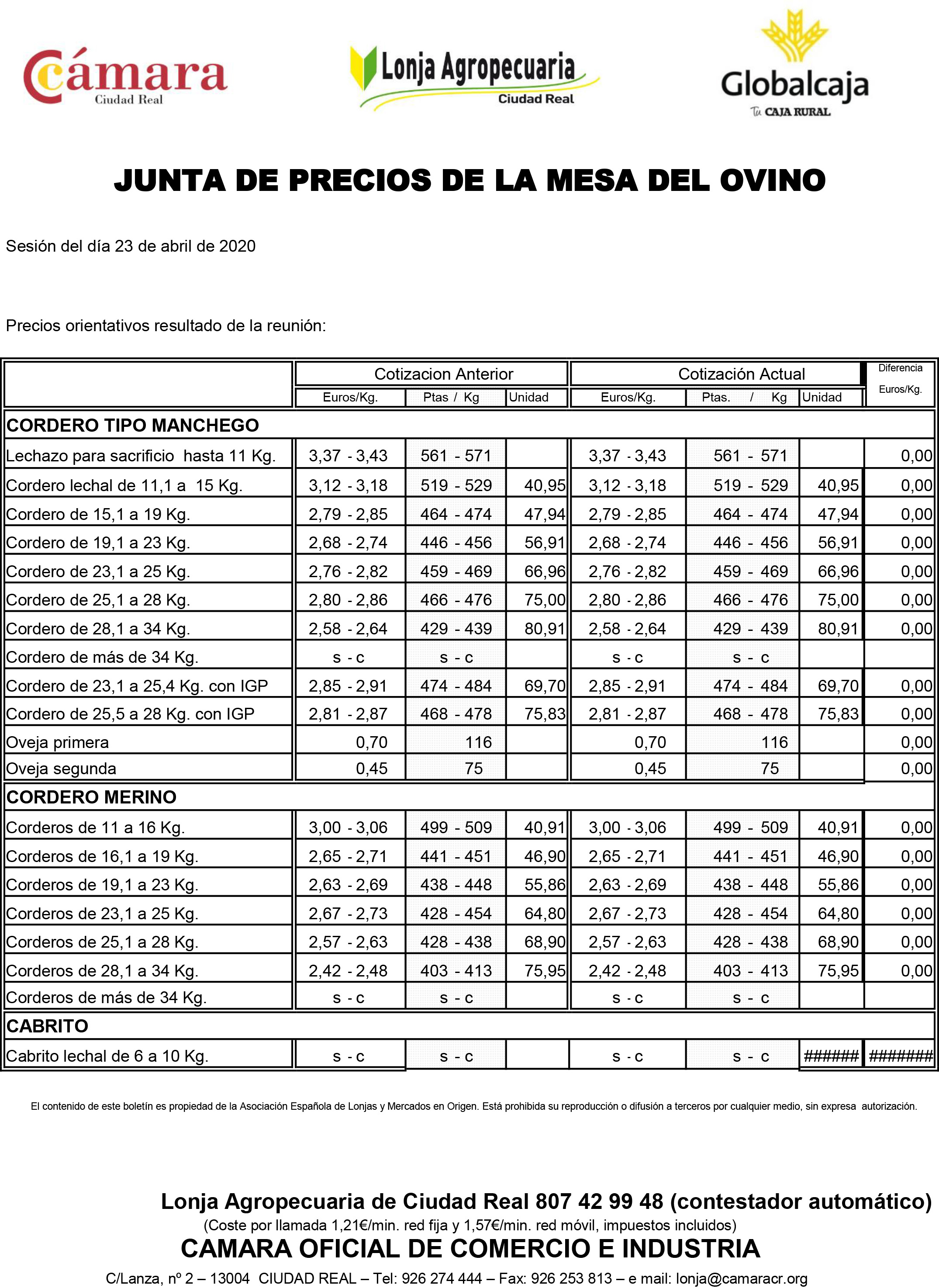 Lonja Ciudad Real. Ovino. 23-abril-2020