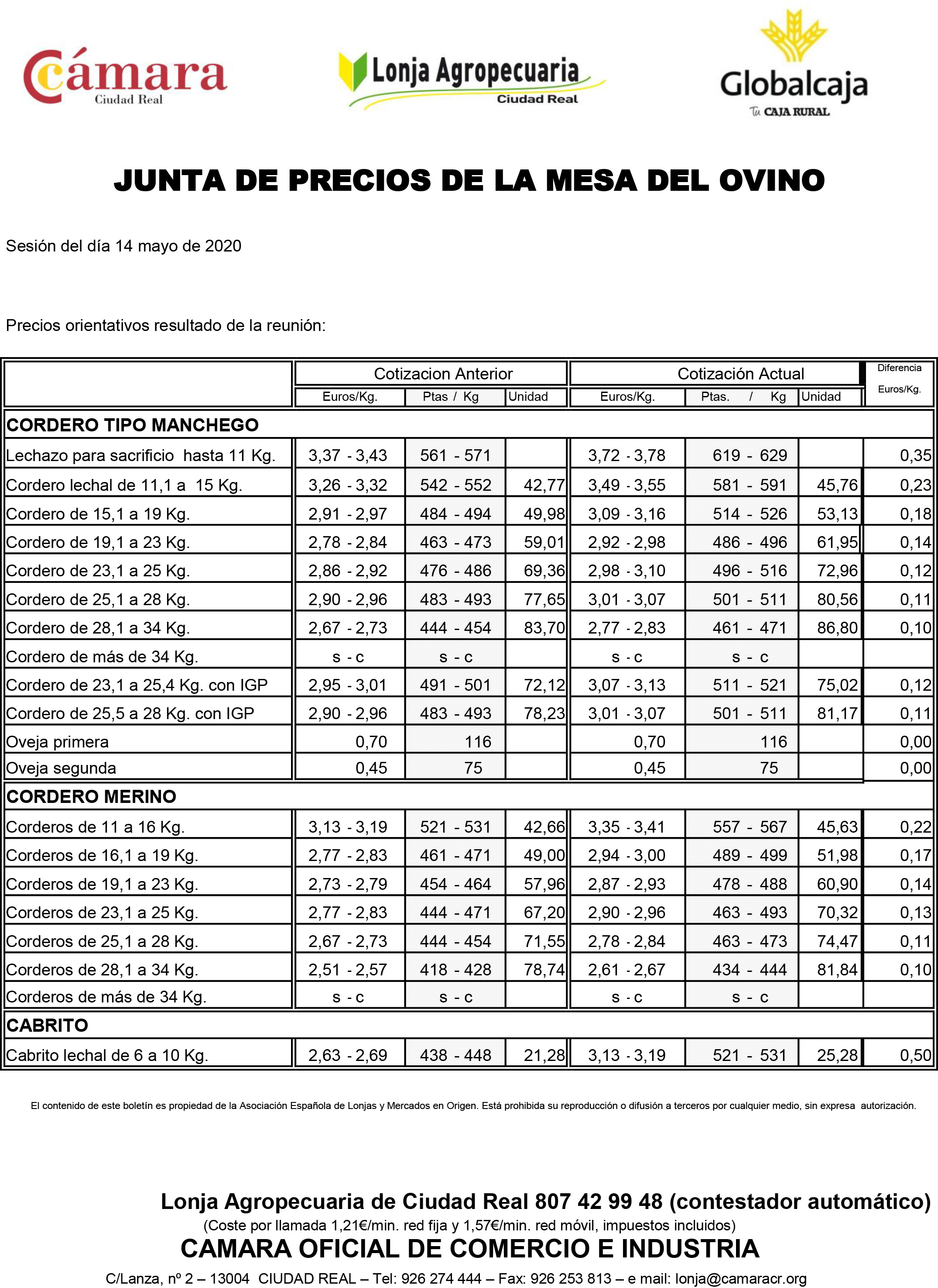 Lonja de Ciudad Real. Ovino. 14-mayo-2020