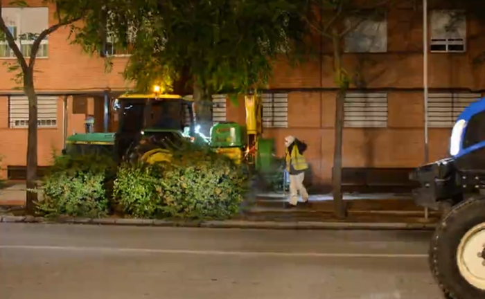 Las primeras desinfecciones programadas desde el Ayuntamiento en medio de la crisis sanitaria originada por el COVID-10 se realizaban a primera hora de la mañana, pero con el inicio del desconfinamiento, en el que se empezó a permitir la salida de los vecinos y vecinas a la calle, estas labores se trasladaron a horario nocturno con el fin de evitar coincidir en los horarios autorizados para el paseo y la realización de deporte. Además por la noche el producto utilizado en la desinfección es más efectivo ya que con la bajada de las temperaturas las microgotas expulsadas en la pulverización se mantienen más tiempo en las superficies higienizadas.
