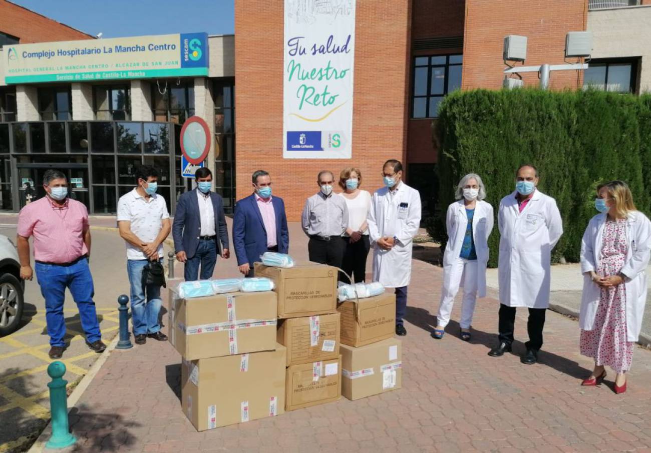 Agricultores de la Asociación Regional de Agricultores Afectados por la No Legalización de Pozos de Explotaciones Prioritarias y de la Cooperativa de Suministros Agrícolas Pedro Muñoz (que engloba a Bodegas San Isidro y las SAT Coloman, Ronda y Cervantino) han donado un total de 12.500 mascarillas y 9.000 euros al Hospital La Mancha Centro, de Alcázar de San Juan (Ciudad Real).