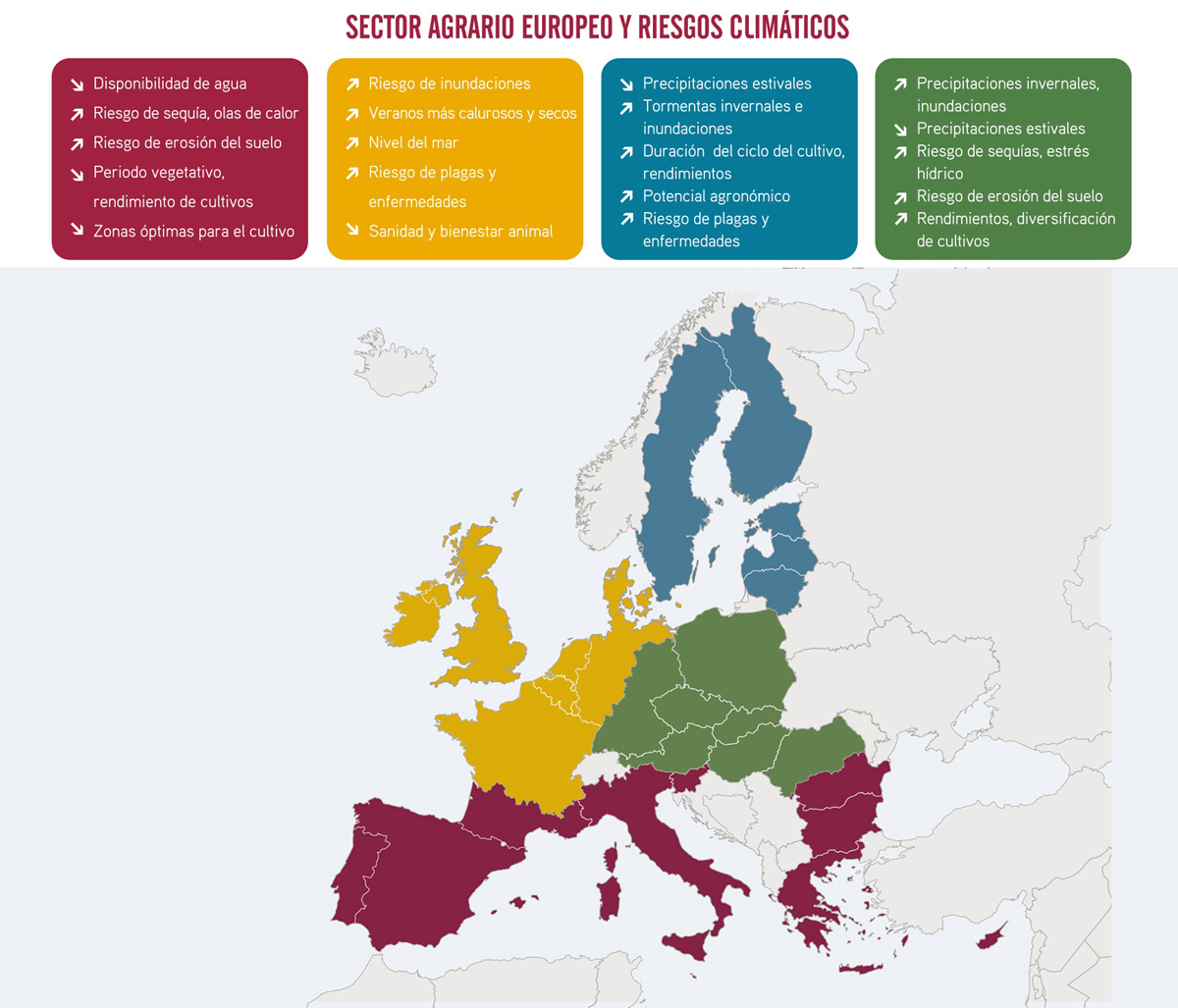 Destaca el “Informe inicial de las principales 4 regiones climáticas en riesgo de la UE”, que contiene información general sobre cambio climático y sector agrario y, en particular, sobre la vulnerabilidad de diferentes sistemas agrarios en las 4 principales regiones climáticas en riesgo de la UE, y el Manual “Adaptación de sistemas agrarios” que incluye casos prácticos con los resultados en explotaciones agrarias piloto.