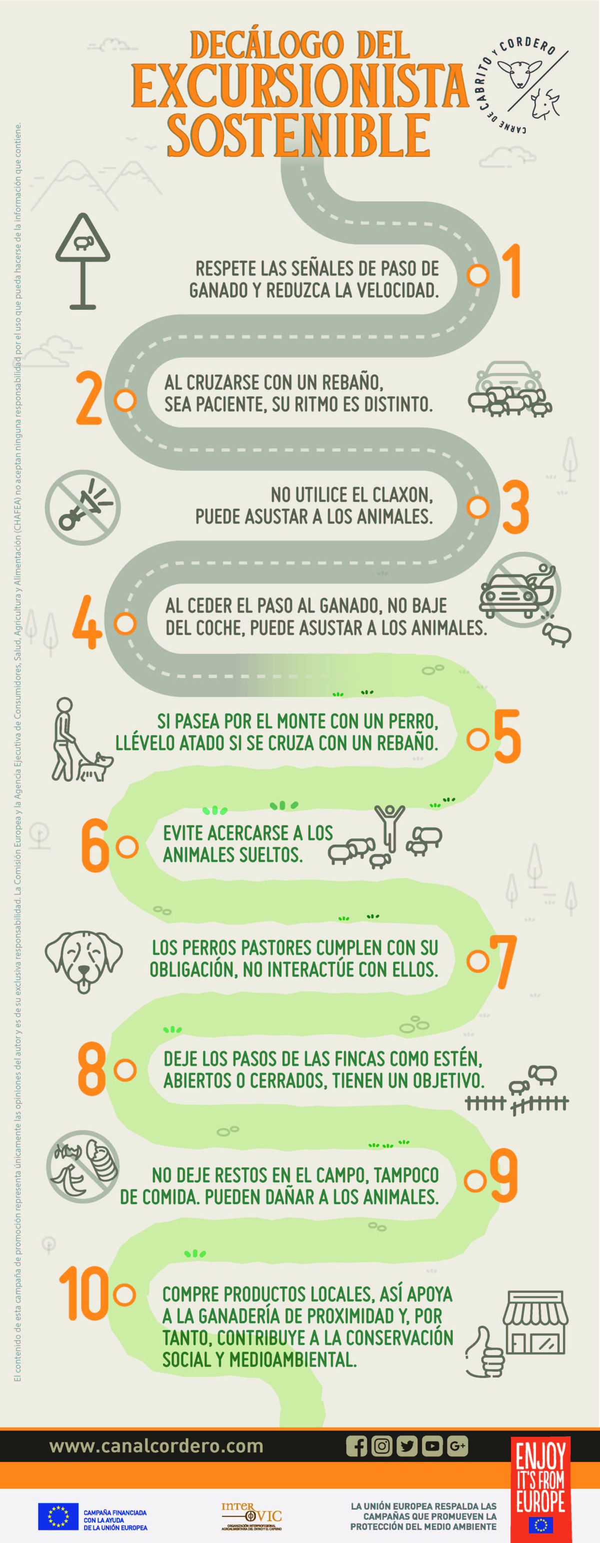 La Interprofesional Agroalimentaria del Ovino y Caprino, INTEROVIC, ha sido la encargada de ejercer de portavoz a un sector que reivindica una conducta responsable y sostenible a los viajeros que van a visitar la España vaciada. Gestos y actitudes cuyos beneficios van desde la contribución a la conservación del medio ambiente rural hasta la prevención de accidentes mortales de tráfico. Ha reunido en diez consejos las recomendaciones de los hombres y mujeres que pasan su día a día recorriendo los campos y montes con sus rebaños de ovejas y cabras, generando economía rural y social en lugares en los que no hay muchas más alternativas.