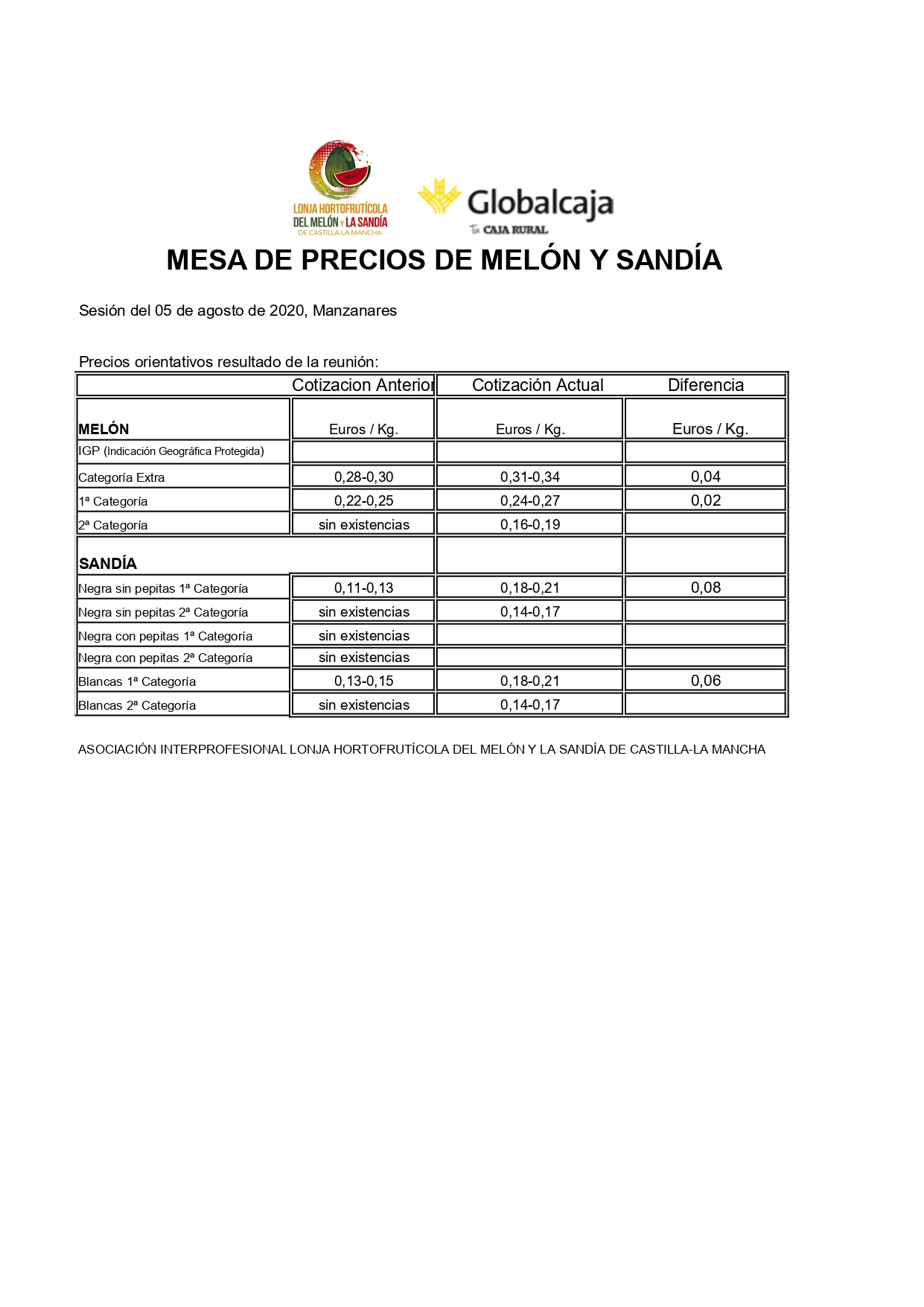 Lonja del Melón y la Sandía de Castilla-La Mancha. Sesión del 5 de agosto de 2020, celebrada en Manzanares (Ciudad Real)
