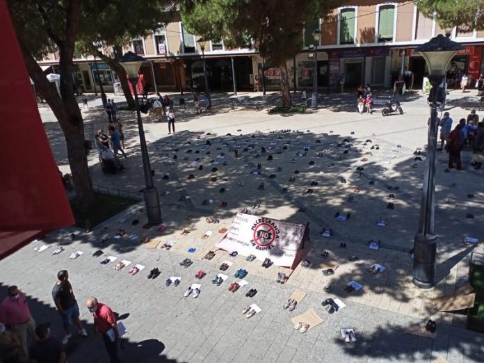 La plataforma ciudadana ‘STOP Macrogranjas Daimiel’ ha conseguido reunir 200 pares de zapatos frente al ayuntamiento, este miércoles, en la ‘manifestación simbólica’ convocada en contra de la instalación de una macrogranja de cerdos en la localidad.