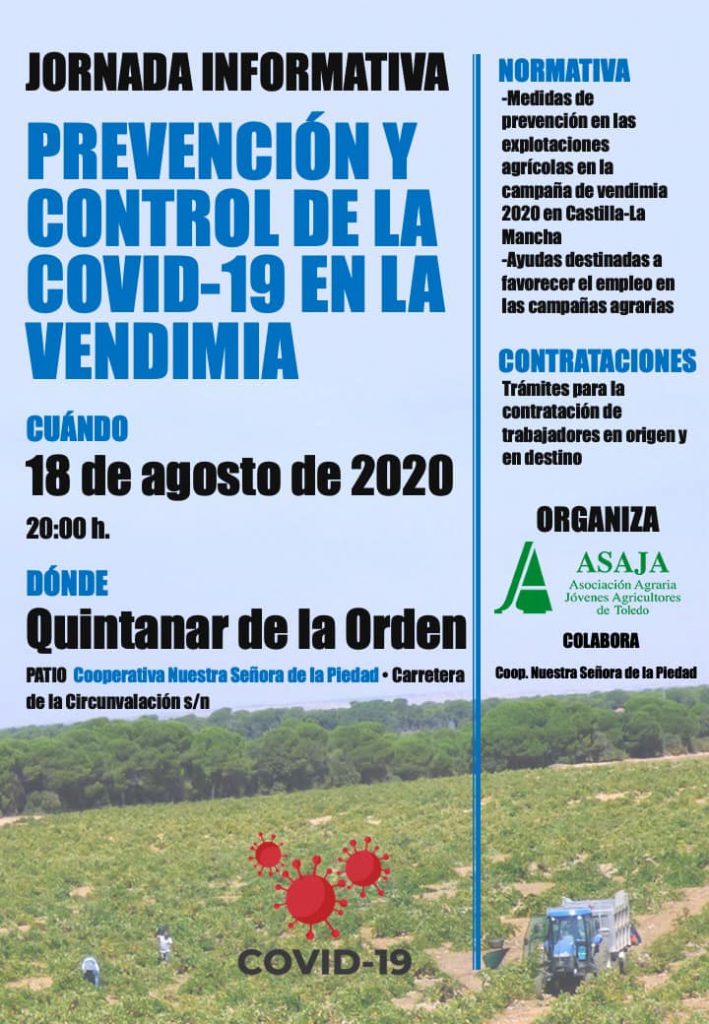 Ante las incertidumbres generadas entre los agricultores, ASAJA Toledo ha organizado una jornada informativa para detallar las medidas que hay que cumplir. Tendrá lugar el martes 18 de agosto a las 20:00 horas en el patio de la Cooperativa Nuestra Señora de la Piedad de Quintanar de la Orden.