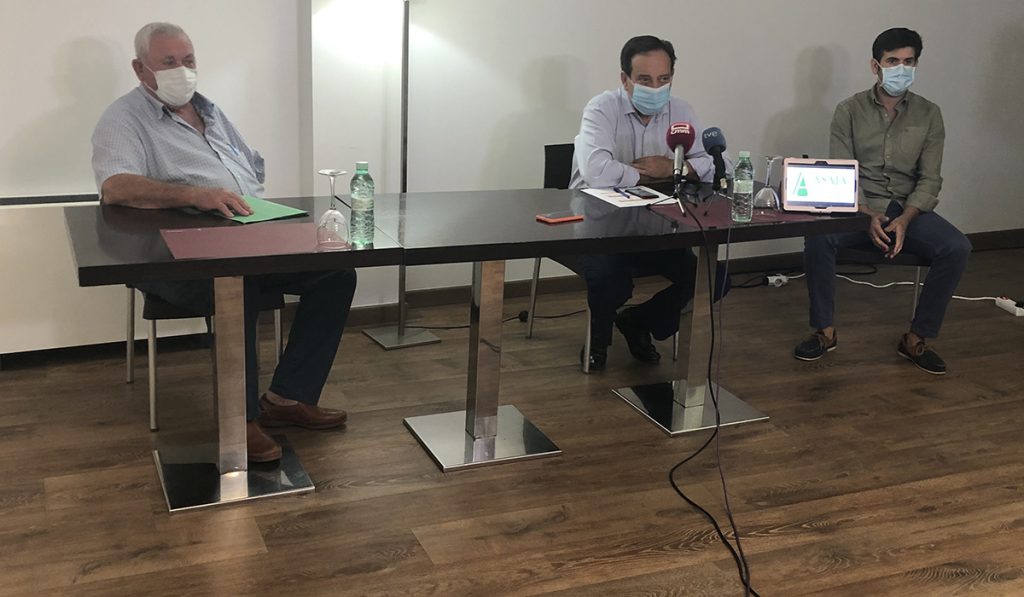 Barato ha estado acompañado; del secretario general de ASAJA Castilla-La Mancha, José María Fresneda; del secretario general técnico, Arturo Serrano, y del presidente regional, Fernando Villena, que ha recordado que cada 26 de agosto Tomelloso celebraba el Día del Viticultor, por lo que han querido conmemorar este acto, que este año no se ha podido celebrar por la pandemia, con una rueda de prensa.