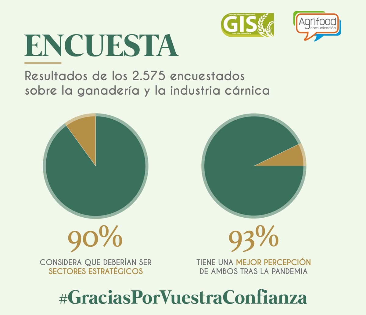 Además, el 90% cree que tanto la ganadería como la industria cárnica deberían considerarse sectores estratégicos para nuestro país, sin esperar a que llegue una crisis para ello; frente al restante 10%, que dice no tener una opinión al respecto o no considerarlo necesario.