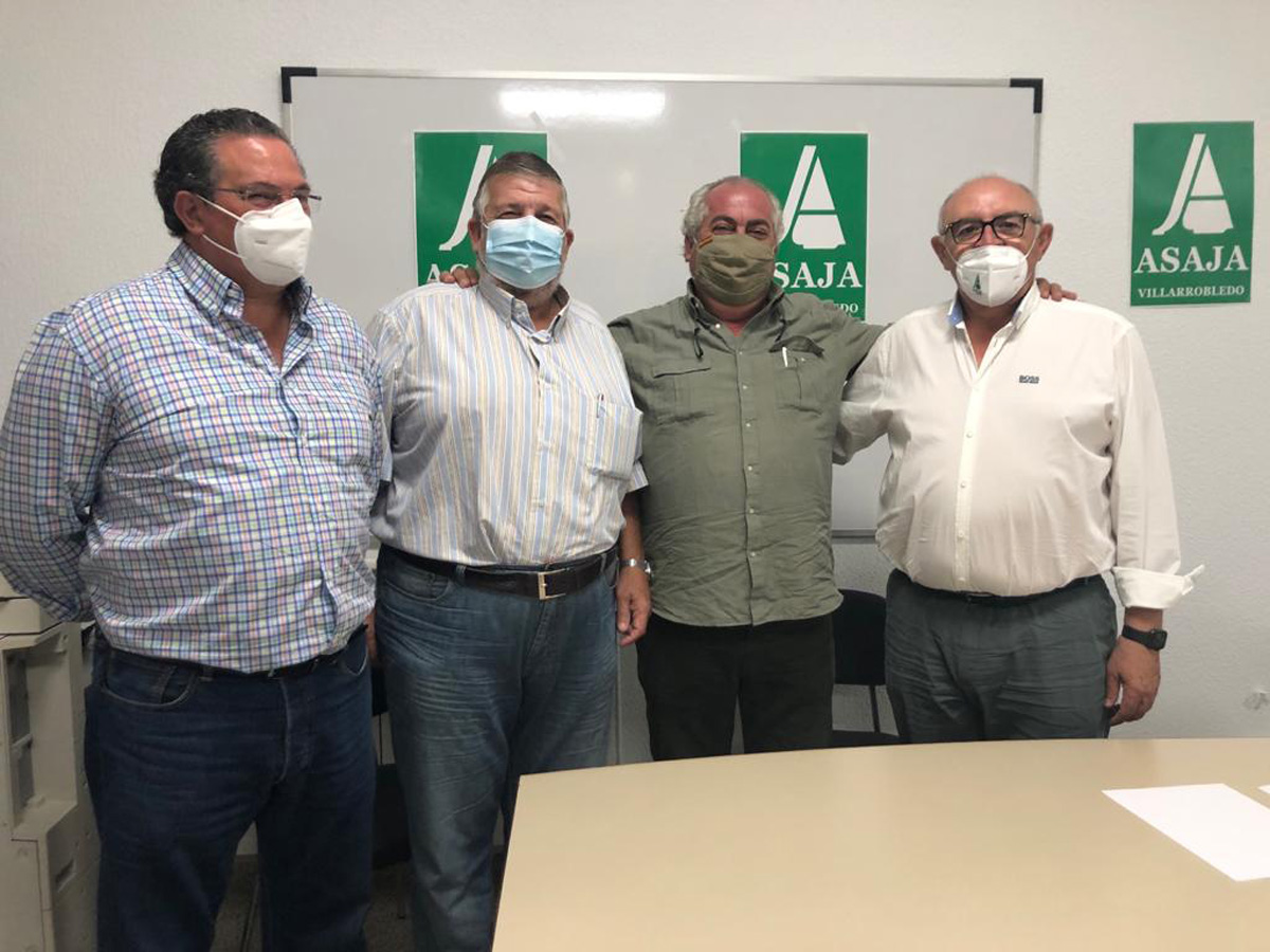 El secretario general de ASAJA Castilla-La Mancha, José María Fresneda, ha valorado este lunes el inicio de la campaña de vendimia en Villarrobledo (Albacete), junto al presidente provincial de la organización agraria, Jorge Navarro; el vicepresidente, Alfonso Morcillo; el presidente local, Bernardo Díaz; su vicepresidente Juan Bonillo, y el secretario general técnico de ASAJA en la región, Arturo Serrano.