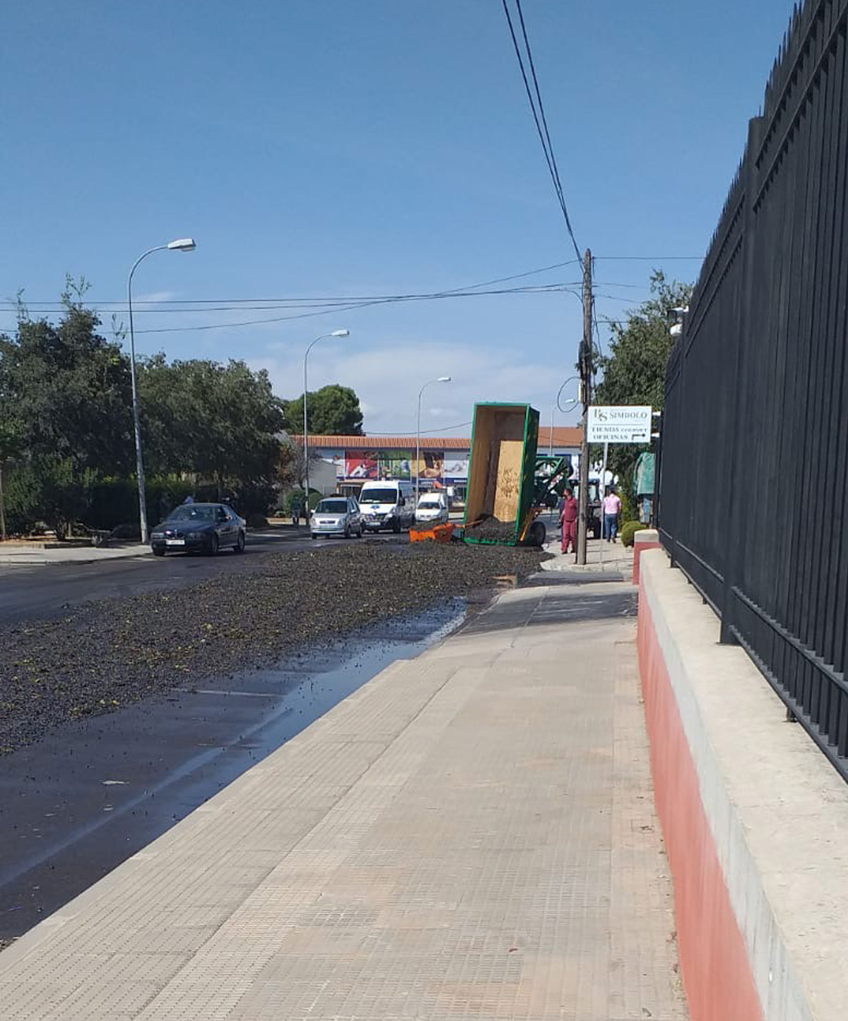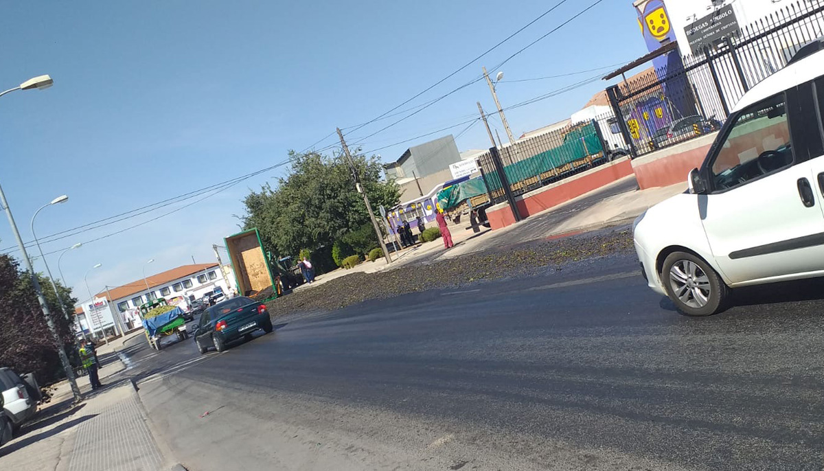 En el mediodía de este viernes un tractor con remolque que acarreaba uva en Campo de Criptana (Ciudad Real) volcaba a la altura de Bodegas Símbolo, en la salida hacia Pedro Muñoz, esparciendo la fruta por la calzada pero, afortunadamente, sin heridos, y solo con daños materiales en la maquinaría agraria y el valor de la uva derramada