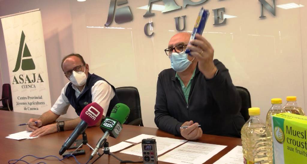 El secretario general de ASAJA CLM ha mostrado en la rueda de prensa ofrecida hoy en Cuenca numerosos productos elaborados con aceite de palma como galletas, dulces, cereales… y ha pedido a los consumidores que lean las etiquetas bien antes de adquirirlos.