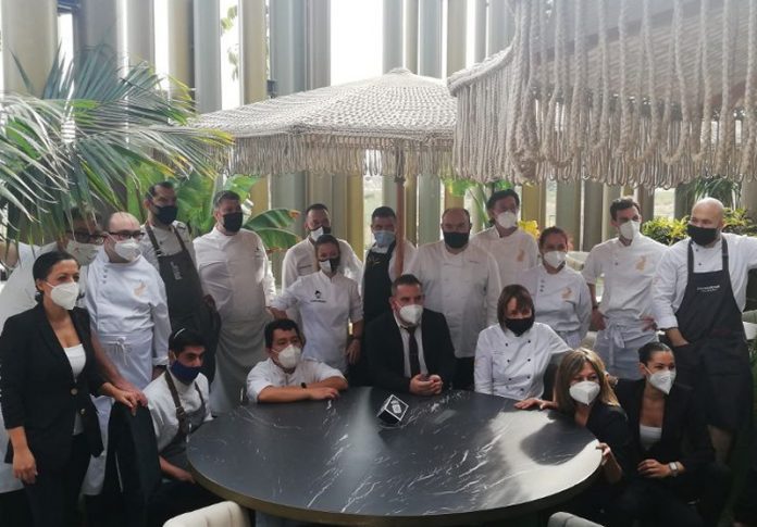 El evento ha reunido a otros ocho cocineros para elaborar un menú que ha constado de doce pases y postre, tres elaborados por Nazario Cano, estrella Michelin con El Rodat de Jávea, y el resto por los siguientes chef: