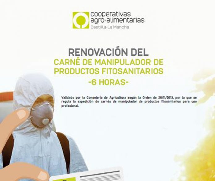 Cooperativas Agro-alimentarias de Castilla-La Mancha ha programado un curso de Renovación del carné de manipulador de productos fitosanitarios, que tendrá lugar el próximo 15 de octubre en Fuentealbilla (Albacete)