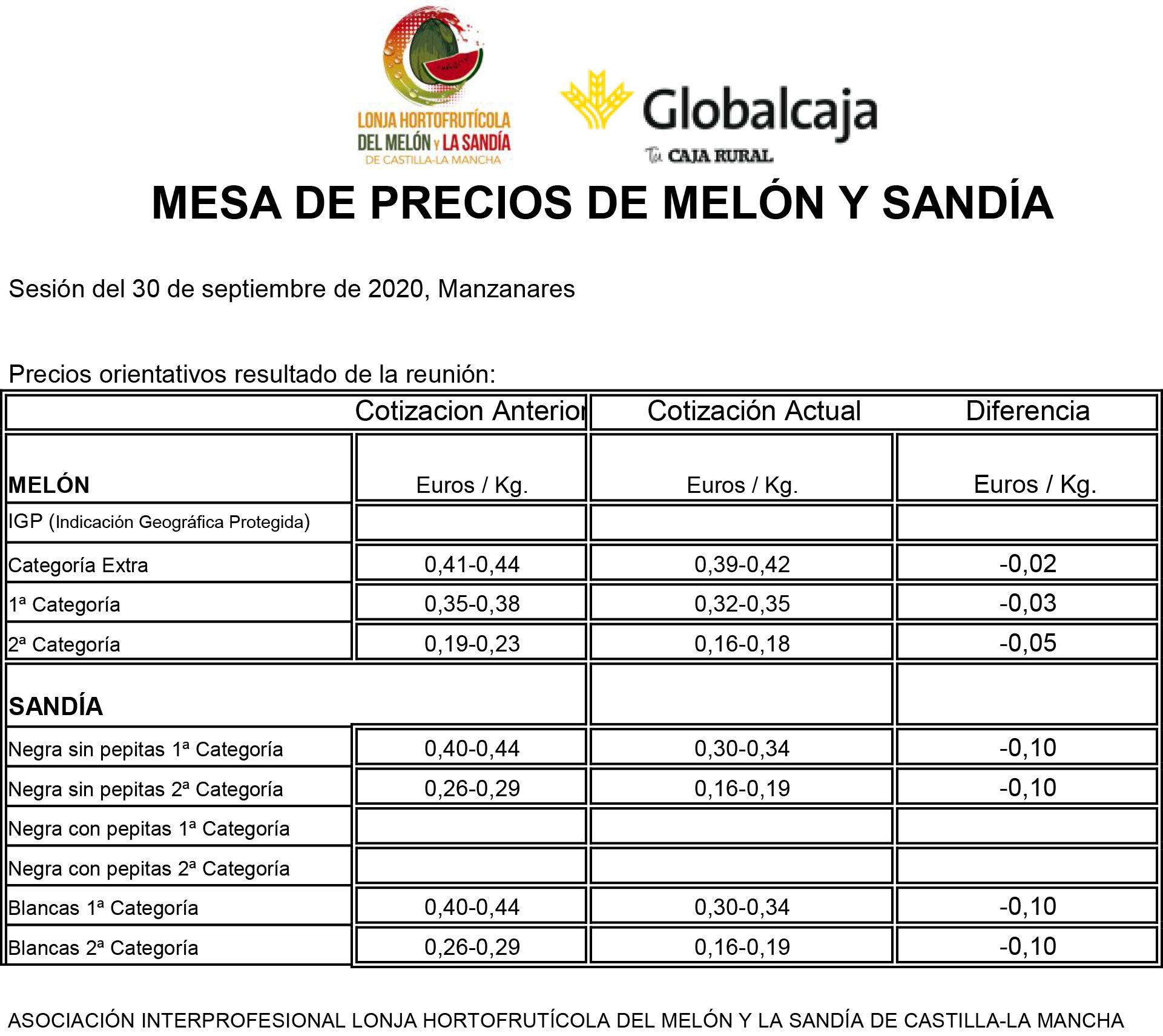 Lonja Melón y sandía. Castilla-La Mancha. 30-septiembre-2020