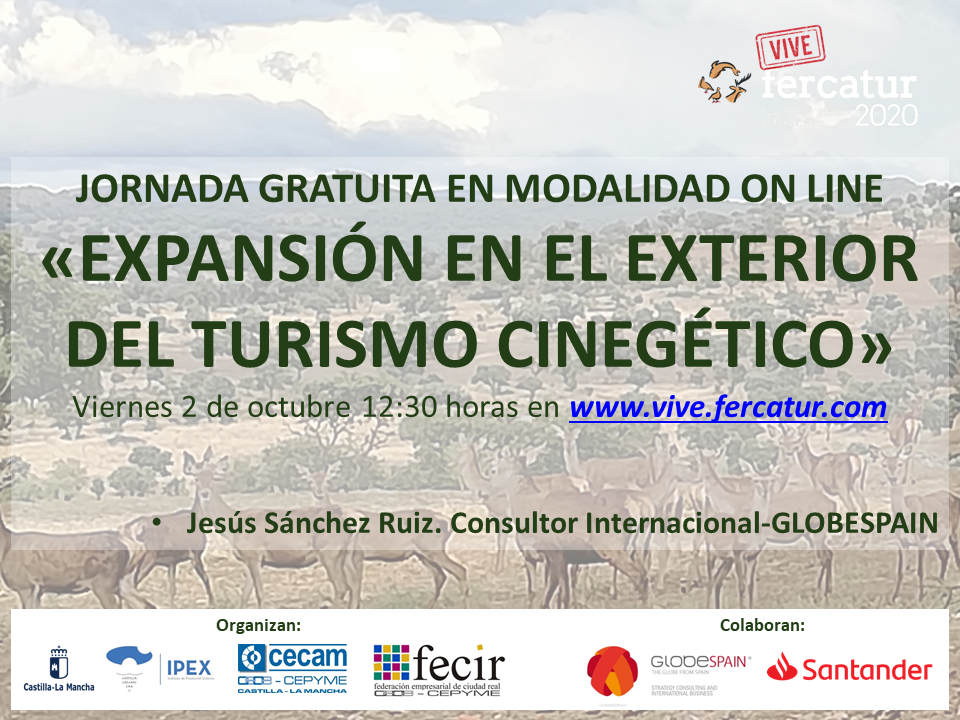 Para introducir en los inicios de esta captación, el Servicio de Comercio Exterior de FECIR, dentro de su participación en la colaboración suscrita por CECAM e IPEX (Instituto de Promoción Exterior de Castilla-La Mancha) organiza una jornada on line gratuita, que se celebrará el viernes, 2 de octubre, a través de canal de televisión de la Feria Nacional de la Caza, la Pesca y el Turismo Rural (FERCATUR 2020), a la que se podrá acceder a través del enlace: www.vive.fercatur.com