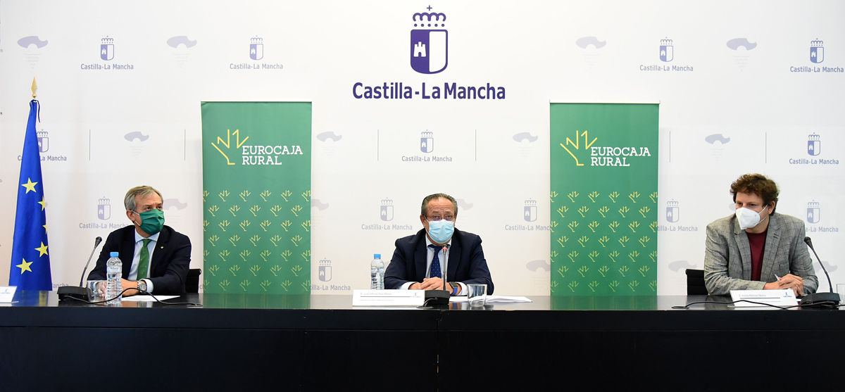 El convenio fue rubricado por el presidente de Eurocaja Rural, Javier López Martín, el consejero de Hacienda y Administraciones Públicas, Juan Alfonso Ruiz Molina, y el presidente de la Fundación CIEES y del Grupo CECAP, Andrés Martínez Medina.