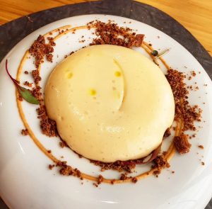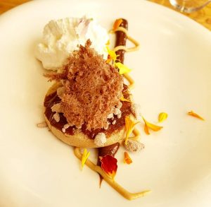 ? Merengue de ajo negro con praliné de avellana, chocolate blanco y bizcocho de chocolate. BRUTAL.