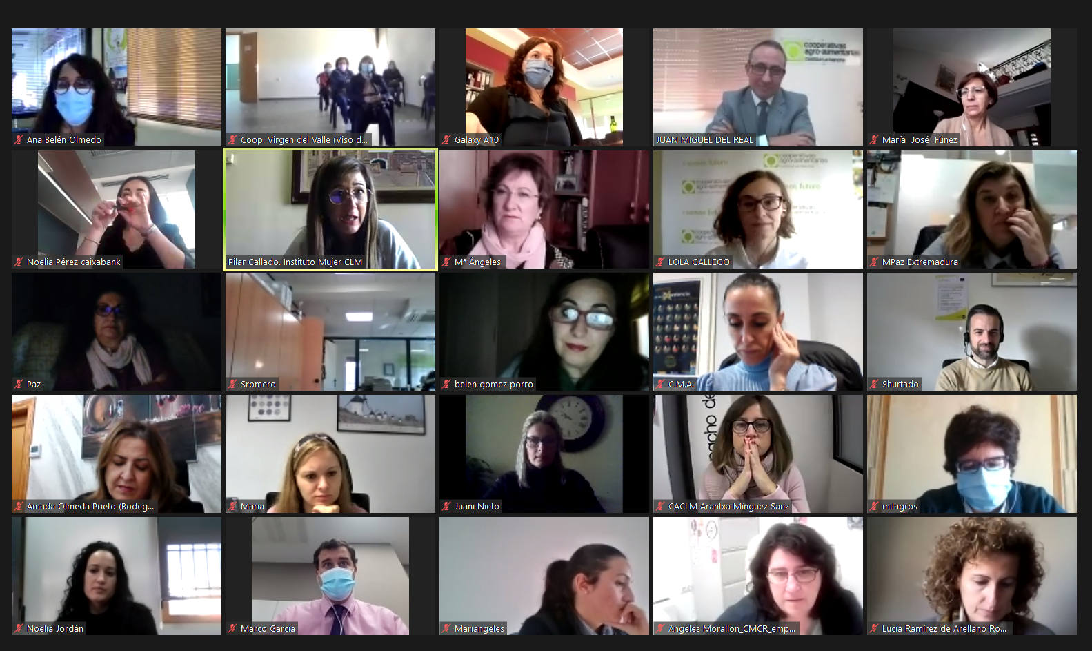 Cooperativas Agro-alimentarias Castilla-La Mancha, con la colaboración de la Fundación La Caixa, Instituto de la Mujer de Castilla-La Mancha y Junta de Comunidades de Castilla-La Mancha, ha concluido hoy la primera parte de su II Foro virtual de Mujeres Cooperativistas de Castilla-La Mancha, con un éxito total de asistentes, cerca de un centenar de mujeres que tienen en la actualidad un papel activo en las cooperativas agroalimentarias en Castilla-La Mancha y con vocación de aumentar su participación y liderar el sector. El foro continuará los próximos días 26 y 27 de noviembre, con la presencia, entre otros importantes conferenciantes de la periodista Teresa Viejo.