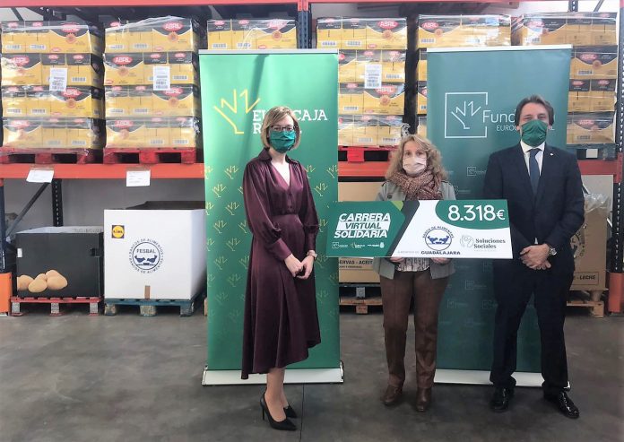 La Fundación Eurocaja Rural ha entregado al Banco de Alimentos de Guadalajara un cheque valorado en 8.318 euros con la finalidad de paliar los efectos de la COVID-19 y contribuir así a la importante labor que desarrolla esta asociación en beneficio de las personas más desfavorecidas, especialmente en momentos tan difíciles como los actuales debido a la pandemia que estamos sufriendo.