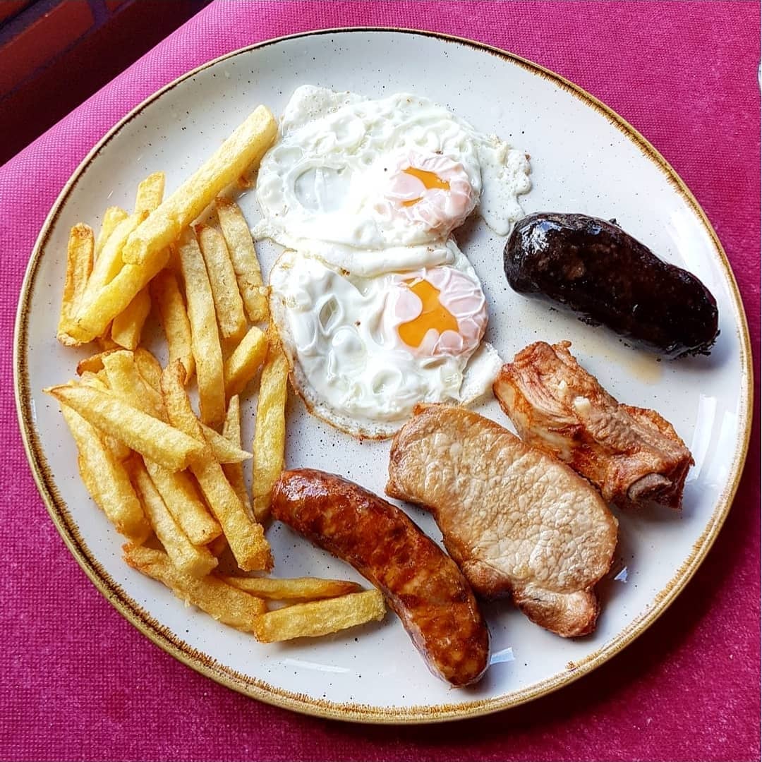 ▪PLATO NO APTO PARA MILINDRES: Costillas adobadas, lomo de Orza, chorizo de ciervo, morcilla de matanza, patatas y huevos fritos. EPIC WIN.