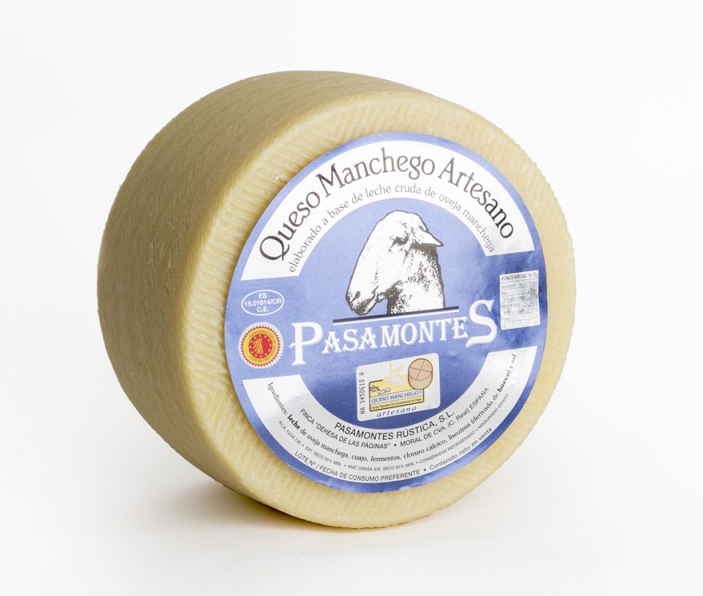 Queso de pasta prensada elaborado con leche pasteurizada de oveja de la raza manchega con una maduración mínima de 60 días y máxima de 2 años. Corteza dura de color amarillo pálido a marrón y pasta firme y compacta con color variable desde blanco hasta marfil-amarillento. Sabor ligeramente ácido que se incrementa con la curación. Ojos pequeños y desigualmente repartidos. Empresa registrada y controlada por La Fundación Consejo Regulador del Queso Manchego y por la Asociación Nacional de Criadores de Ganado Ovino Selecto de Raza Manchega (AGRAMA).
